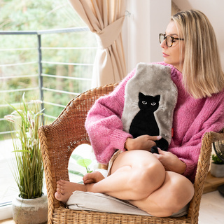 Borsa dell'acqua calda GRANDE riscaldatore SOXO grigio da 1,8 litri in un REGALO di peluche con rivestimento in pelliccia