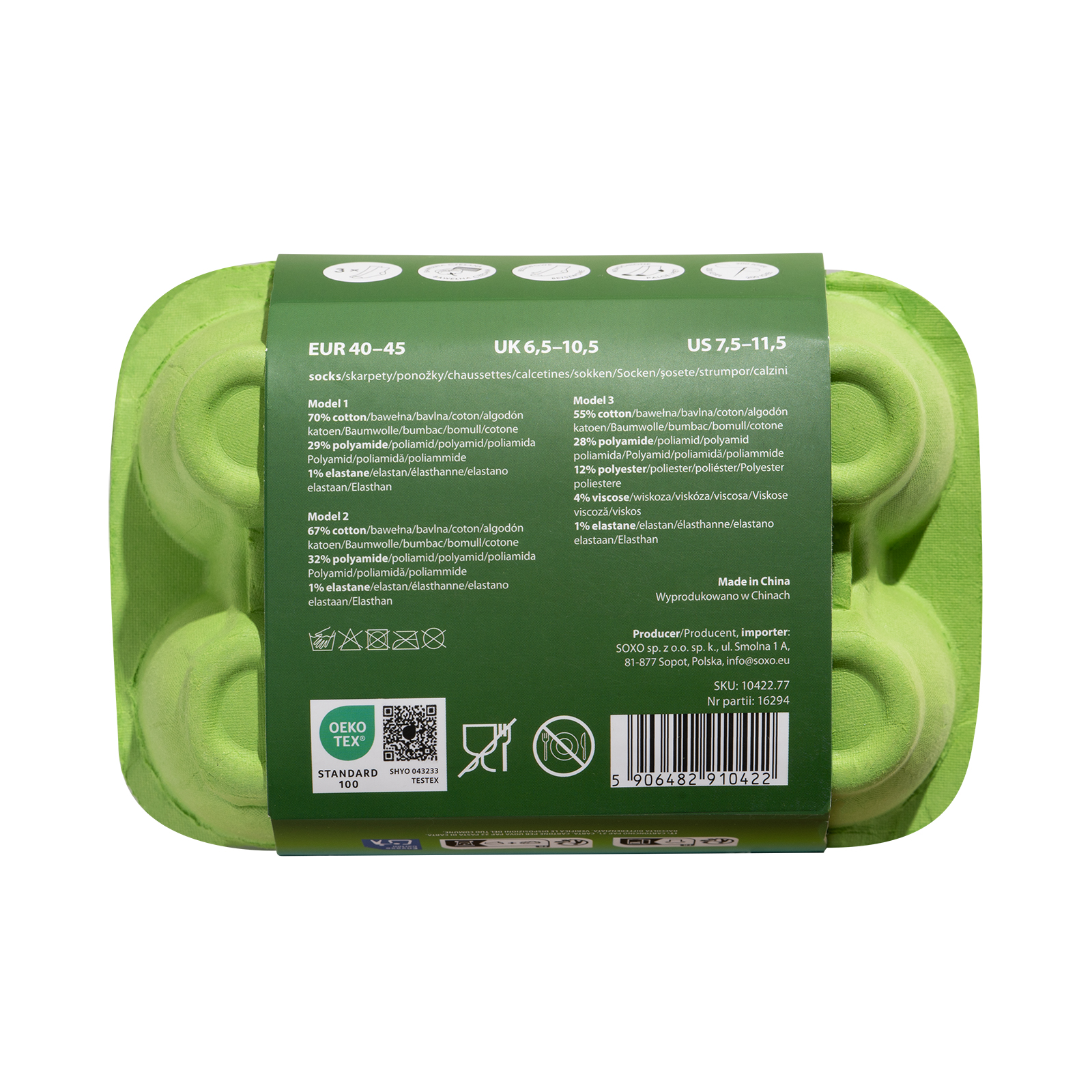Il set di calzini Uova di Campagna per uomo è un'idea regalo perfetta o un nuovo e divertente tocco nell'abbigliamento. Con noi non ci si annoia mai, e i nuovi modelli di calzini sorprendono per la loro originalità.
