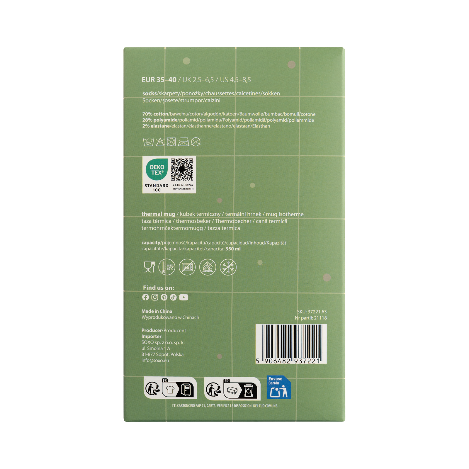 Matcha, relax e piedi caldi – tazza 350 ml e calzini morbidi e colorati. Perfetta per bevande calde e fredde.