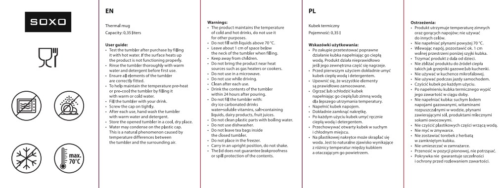 maksymalna temperatura płynu w kubku wynosi 70°C